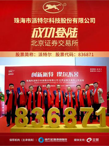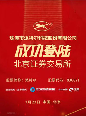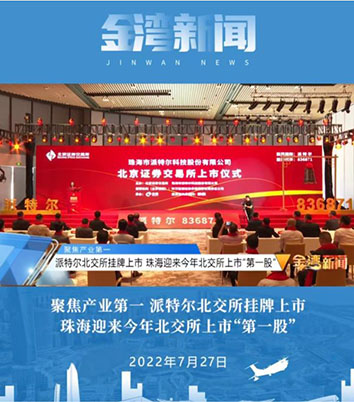 2022年7月22日,珠海市派特爾科技股份有限公司正式登陸北交所,成為珠海第45家境內(nèi)上市公司、第二家北交所上市公司!