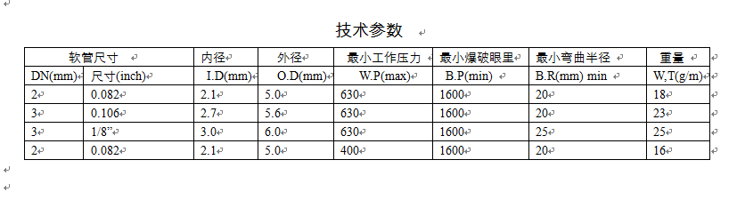 a.      材質(zhì) material :芯管材料 尼龍PA11(Nylon PA11)  增強(qiáng)編織層 芳綸纖維( Aramid fibre)